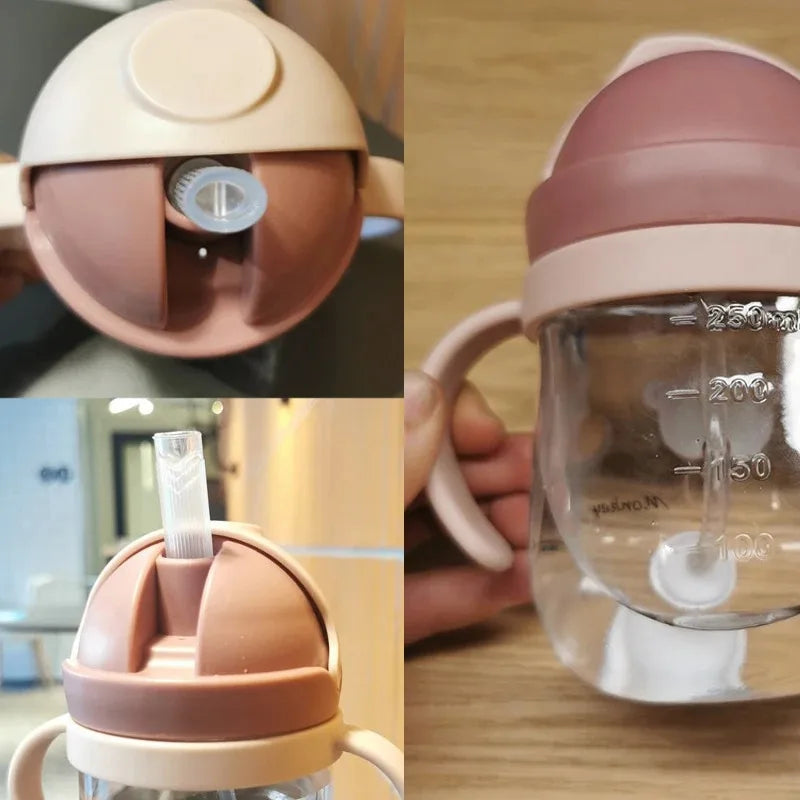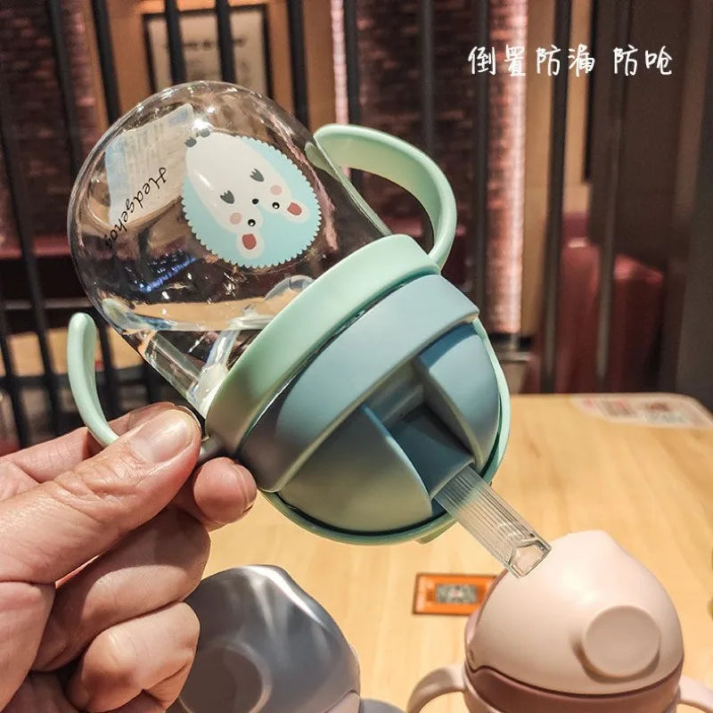 Weighted straw baby bottle with gravity ball. 300ml, anti-choke design, works from any angle. BPA-free, easy-grip handles. Perfect for 6 months+!