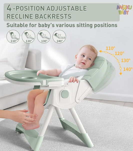 • Adjustable Baby High Chair - 9 Heights, 5 Recline Positions, Foldable (0-4 Years)