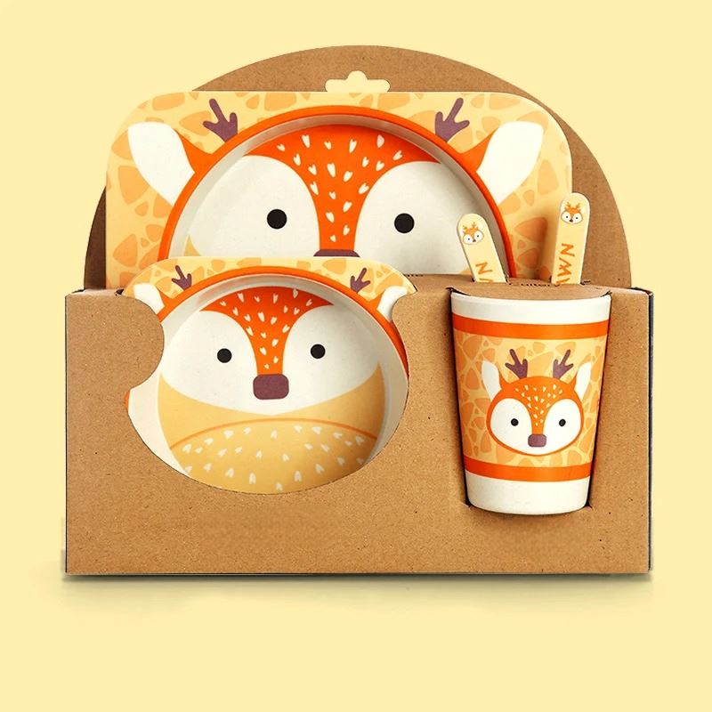 ✔ Nombre de pièces : Set de 5 pièces (bol, assiette, cuillère, fourchette, tasse)